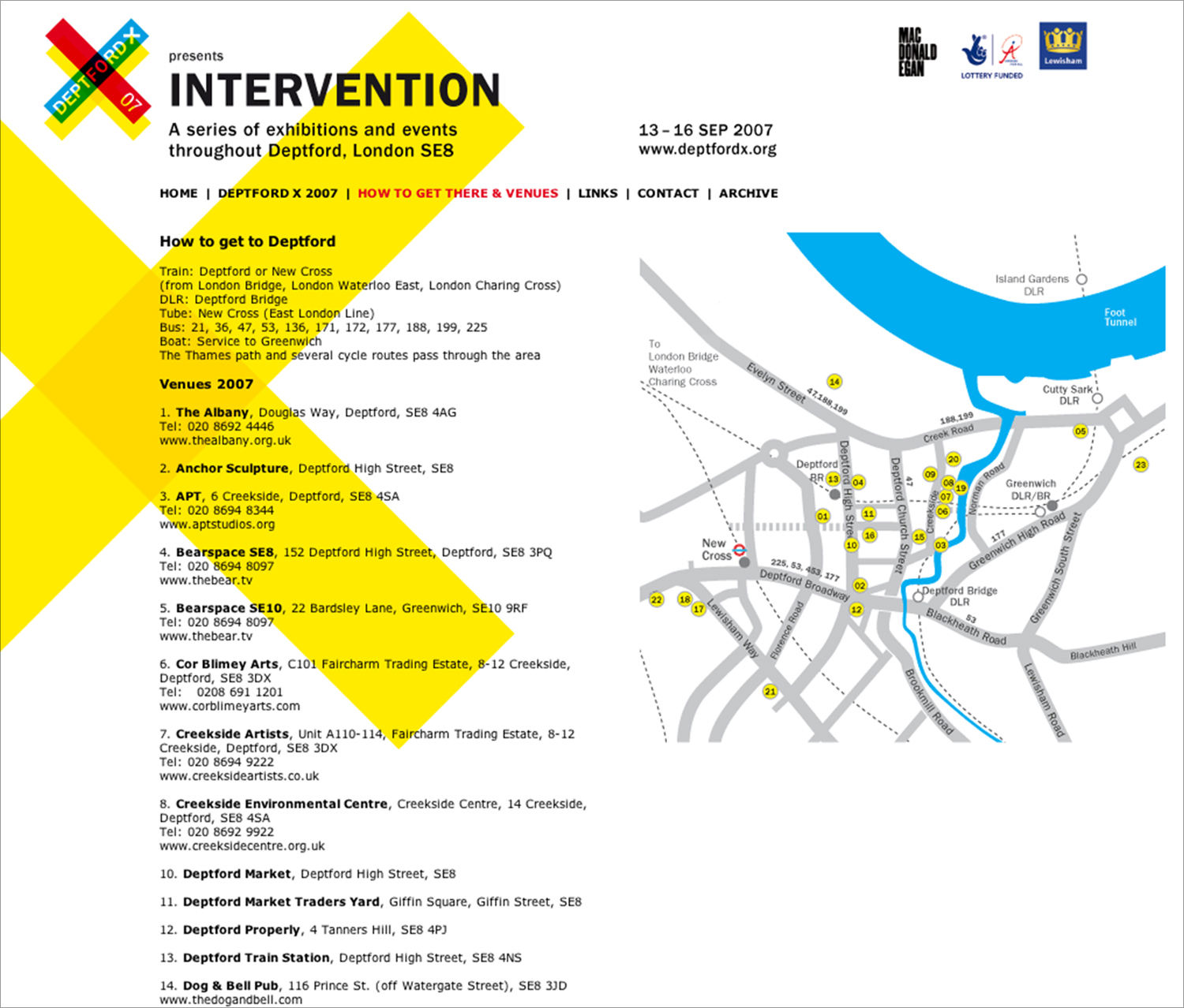Brand positioning and corresponding visual identity for arts festival DeptfordX.