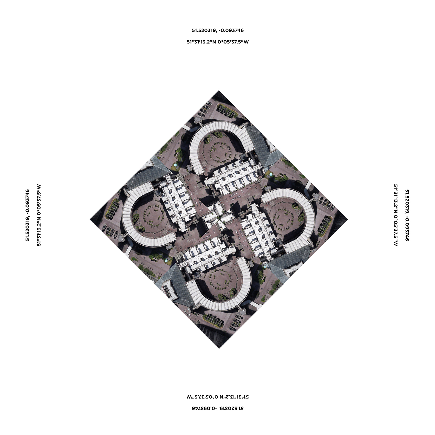 Work in response to the Barbican site, finding/recreating the centre of the labyrith through the use of technology (Google maps).